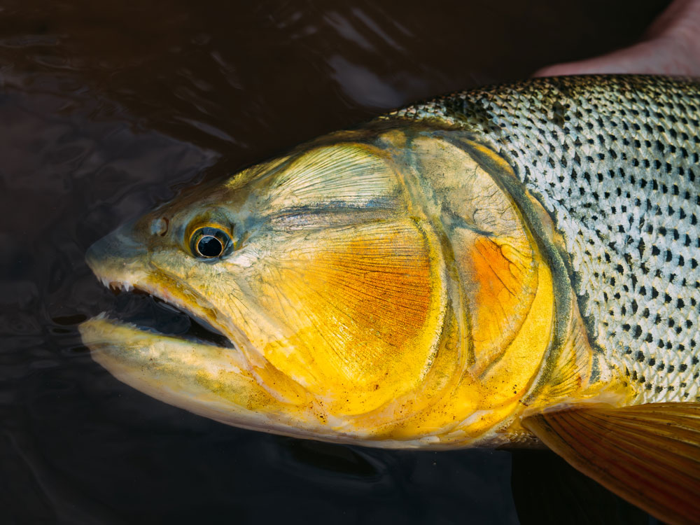 Pirapita, known locally as the “salmon of the river” ranges in size from 2 to 12 pounds. Once hooked, this extremely hard fighting fish is known for its acrobatic displays and multiple jumps. Being an omnivorous species, they are fished using large attractor flies that imitate insects, fruit, mice and even flowers. We target them on lighter equipment, 6 and 7 weight rods. Fishing for pirapita provides the perfect mid day break from casting large flies to Dorado.