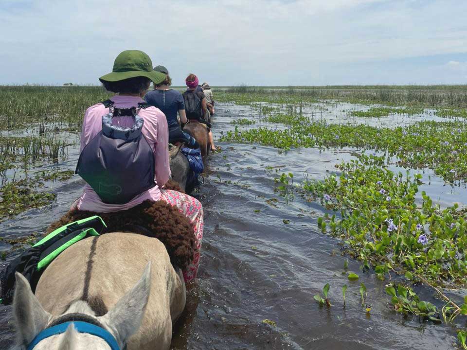 I arrived in Concepción del Yaguareté Corá knowing I would be riding, but not fully aware of how deeply the journey would stay with me. From La Alondra’i, we set out on a four-day horseback journey across the Iberá Wetlands, riding between six and eight hours each day. The route crossed wetlands, grasslands, shallow lagoons, and open water — a vast, protected ecosystem where wildlife is abundant and human presence remains subtle, allowing nature to unfold on its own terms.