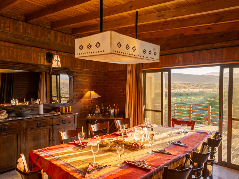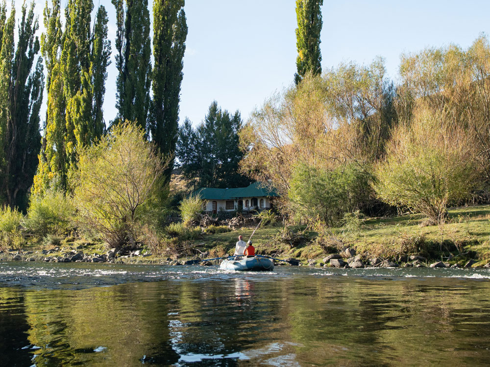 That part of the trip is a total highlight. You leave Rakin in the morning and drive about three hours north. The last stretch is real 4×4 driving — rugged, narrow roads — but that’s what makes it special. It’s not a time gap in the itinerary; it’s an immersive way to see a part of Patagonia few people ever access. You’re driving through canyons, past valleys, maybe stopping to glass some wildlife — it’s all part of the experience.Once you reach the river, the guides have the rafts ready. You float to the Trocoman House while fishing your way downstream. It’s not just transportation — it’s part of the fishing program. That float into the house sets the tone for everything that follows.