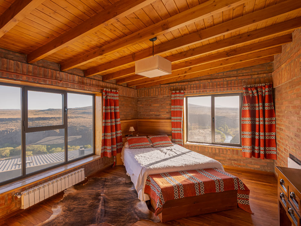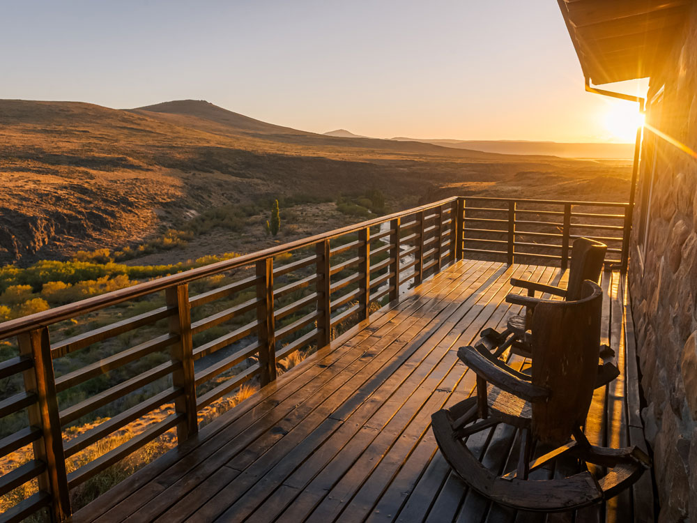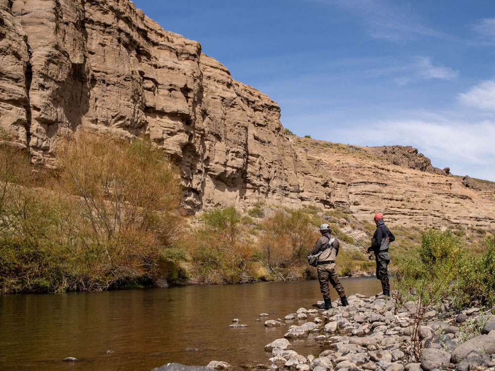 Rakin Lodge is perched on a bluff above the Codihue River, and it’s an absolutely stunning place. The building itself is clean and contemporary, but what really leaves an impression is the view. You’re standing between two worlds — the wide-open steppe to the east, and the Andes rising sharply to the west.Compared to the Spring Creek Lodge area, the geography here feels more rugged, more dramatic. The mountains are taller, the valleys deeper, and the landscape far more isolated. This isn’t a touristy region — in fact, it’d be hard to even find a hotel out here. The roads are rough, which is exactly why almost nobody fishes these waters. And yes, you’ll likely spot Andean condors gliding over the cliffs. It really feels wild.