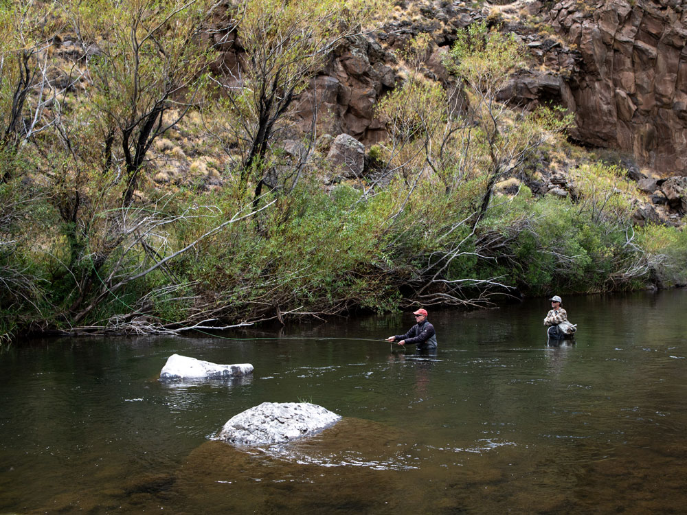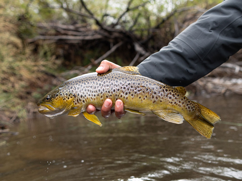 A lot of dry fly action, which I love. Hopper-dropper rigs worked really well, and we also threw streamers to target deeper runs and some big fish hiding under structure. It’s the kind of fishing where you can be technical if you want to be, but you’ll also have plenty of straightforward fun with rising fish.There are fish in every size range — small, medium, and large — and they’re strong. Whatever they are eating, they eat a lot of it. You hook into an 18-inch trout here and it’ll feel like something much bigger. The fish are healthy, thick, and full of fight.